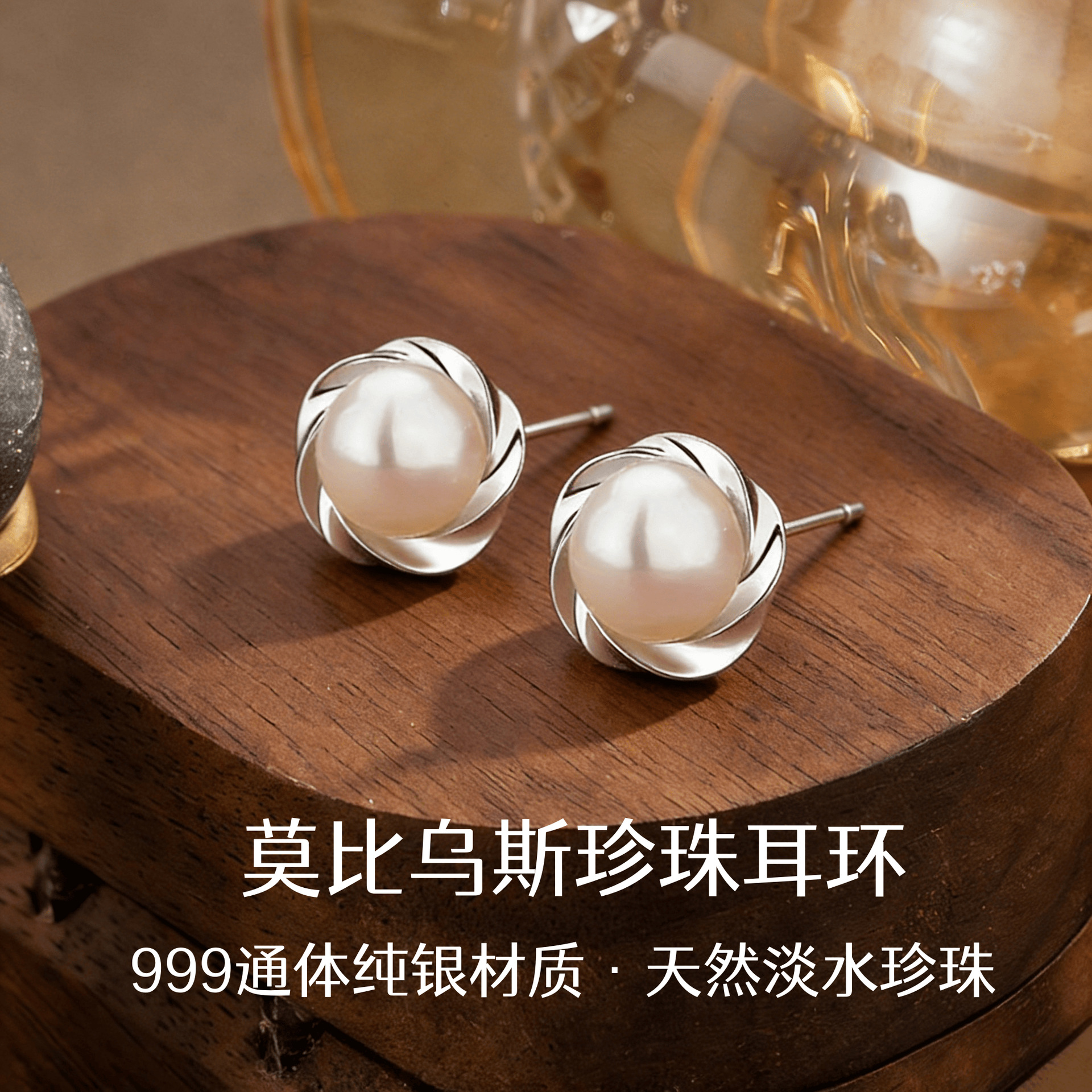 999純銀天然淡水パールイヤリング、女性用軽量高級感モービウスイヤリング、耳穴ケア用イヤリング