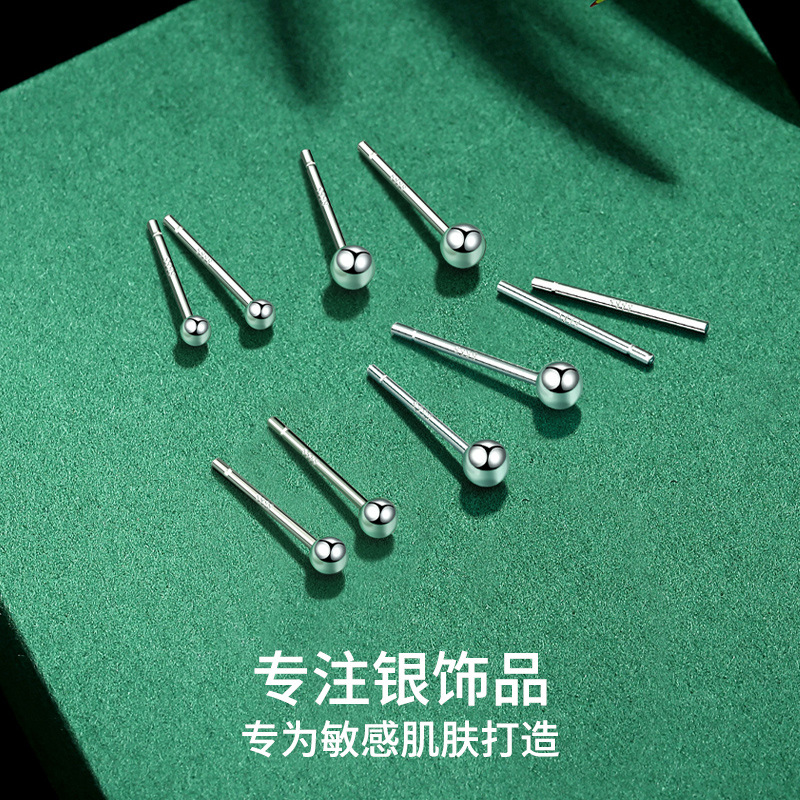 999純銀製の丸ビーズピアス、女性用、軽やかな高級感、ファッショナブルで耳に優しいミニカーフックイヤリングジュエリー。