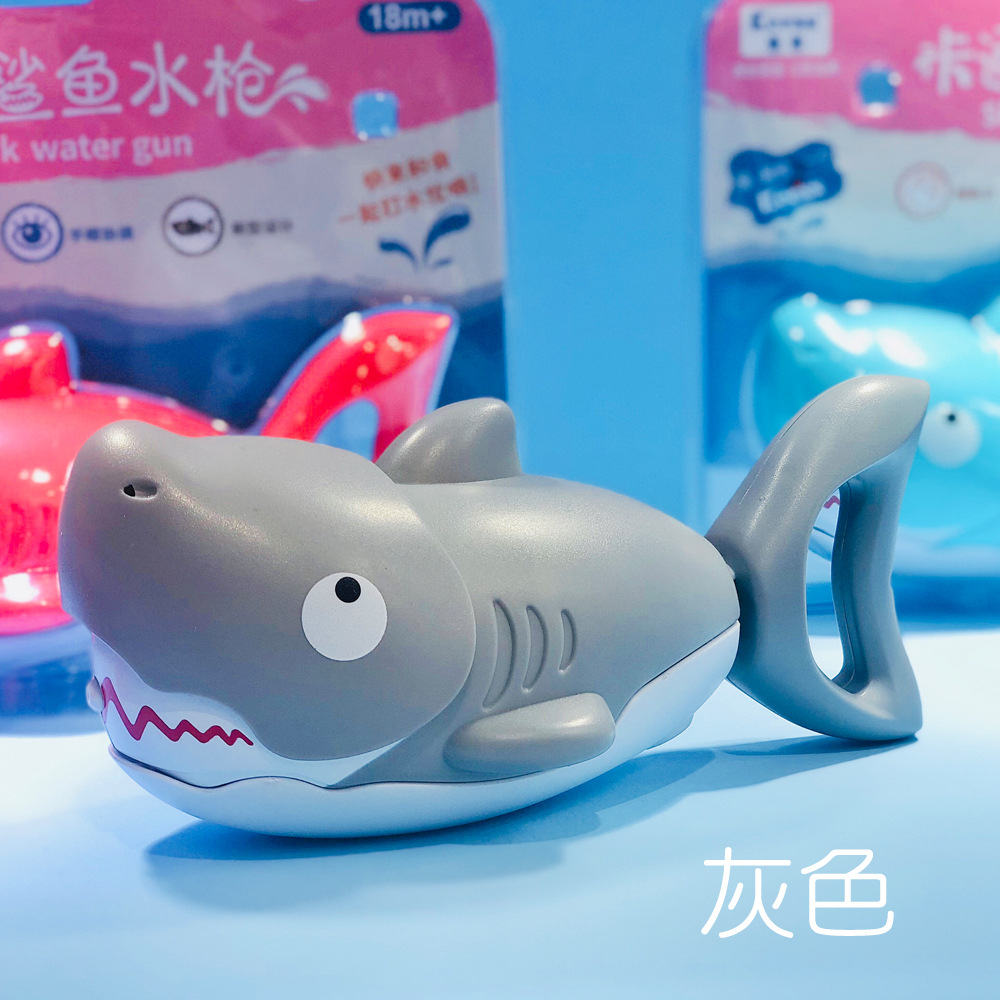 夏の引き出し式のサメの水鉄砲のおもちゃは水をかけます。