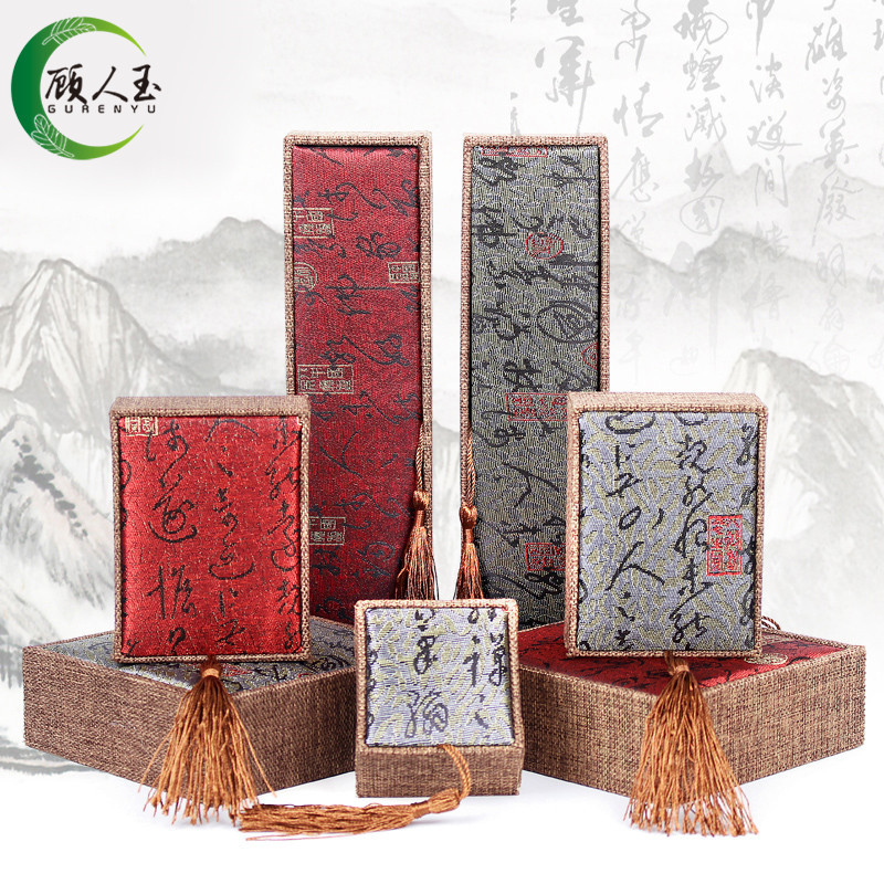 リネンのフリンジジュエリーの宝石箱の長いチェーンのブレスレットの箱の文は手の串の仏の玉の箱の贈り物のアクセサリーの箱の包装箱を遊びます。