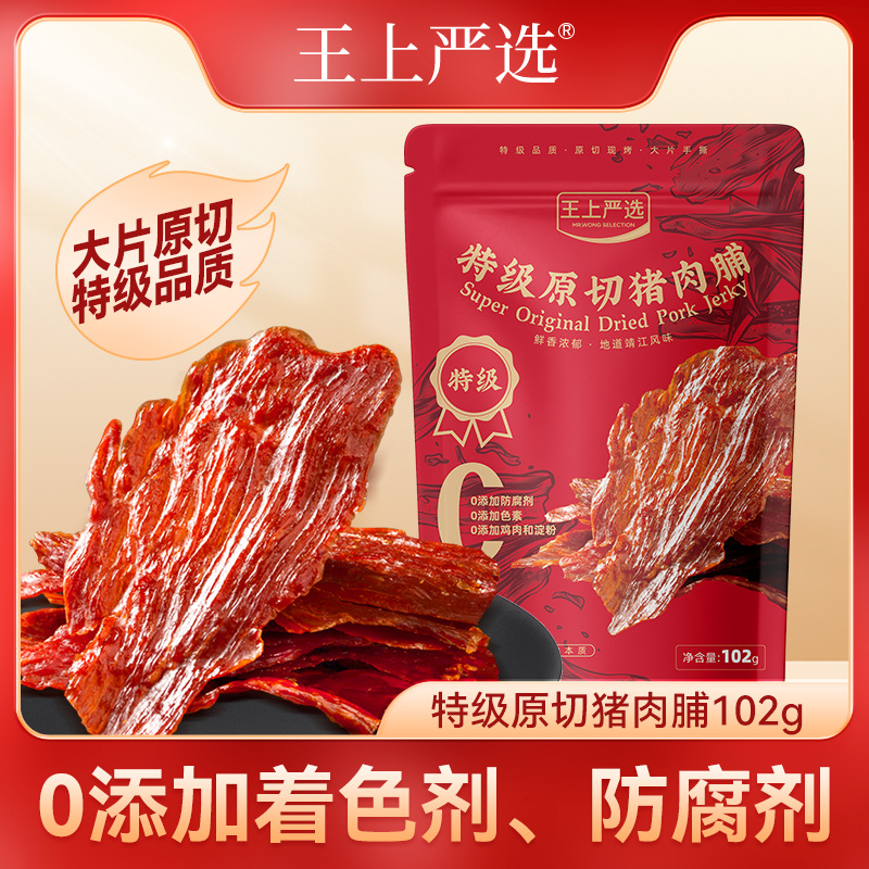 Wang Shangは、高タンパク質のオリジナルカットポークジャーキーを厳選し、学生向けのドラマやカジュアルスナックとして江蘇省京江市で製造されています。