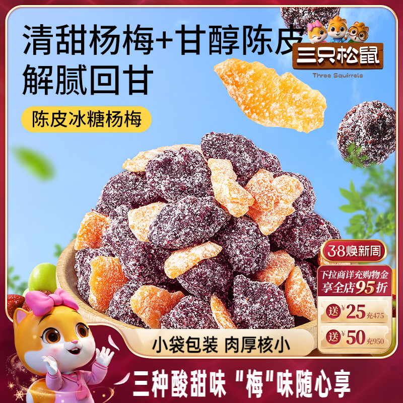 【三リス_梅 50g】スナック 砂糖漬けフルーツ みかんの皮 ヤマモモ 酸っぱい梅 梅
