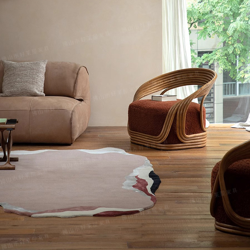 天然藤椅子椅子背もたれ椅子老人手すりシングルソファ真藤家庭用リラクゼーションリビングネット赤デザイナー
