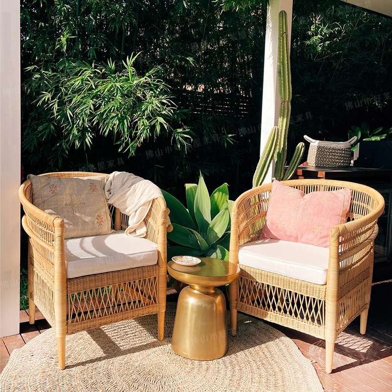 東南アジア藤芸 \ 復古風レジャーシングルバルコニー藤編ソファ椅子民宿ホテル会席椅子
