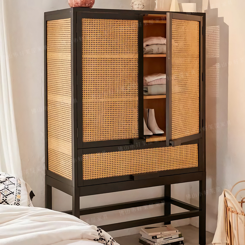 北欧藤編片門箪笥民宿家庭用小戸型寝室レトロ日本式insロッカー