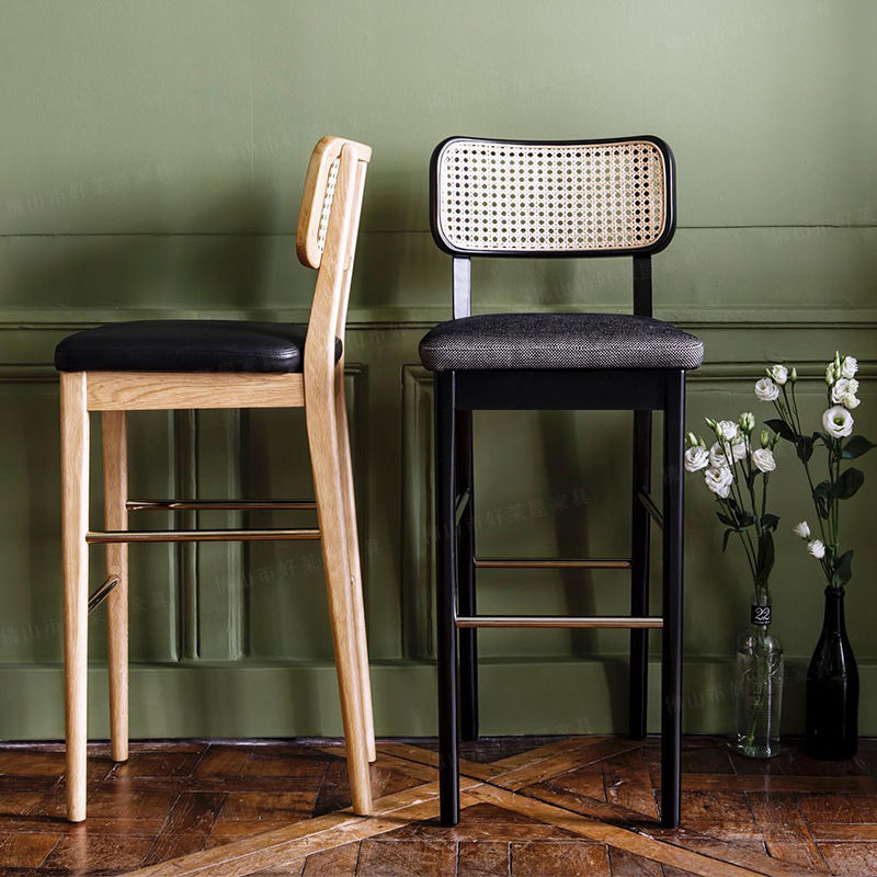 フランス式の木の藤編みのカウンターの椅子は復古的でシンプルです。