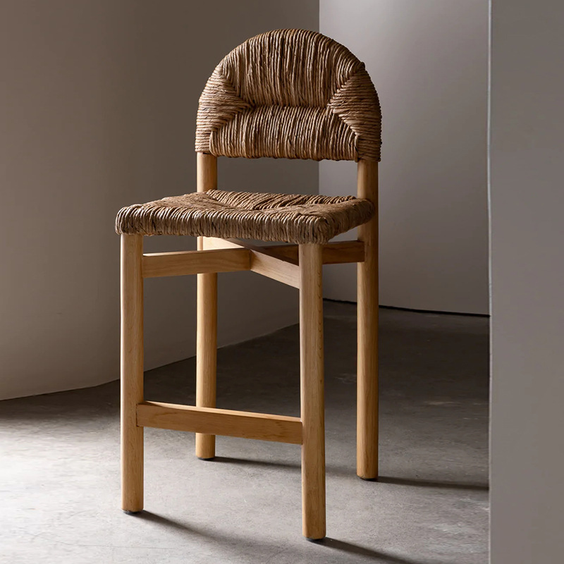 カウンター椅子家庭用高脚実木バースツール北欧insバーバー背もたれ椅子草ロープ編みスツール