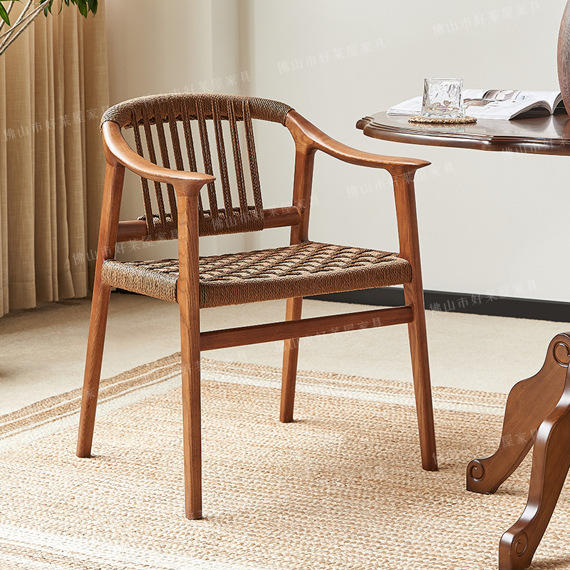 木製ダイニングチェア椅子椅子家庭用レジャー籐編みカフェレストラン椅子バルコニー籐椅子