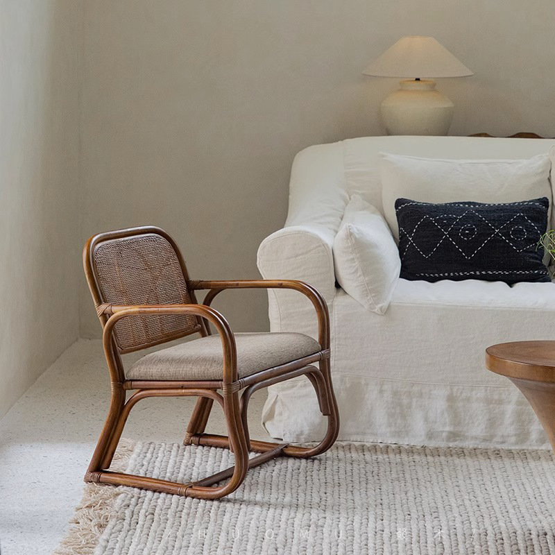 東南アジア藤編みアームチェア客間レジャーソファ椅子家庭用ベランダ手すり椅子