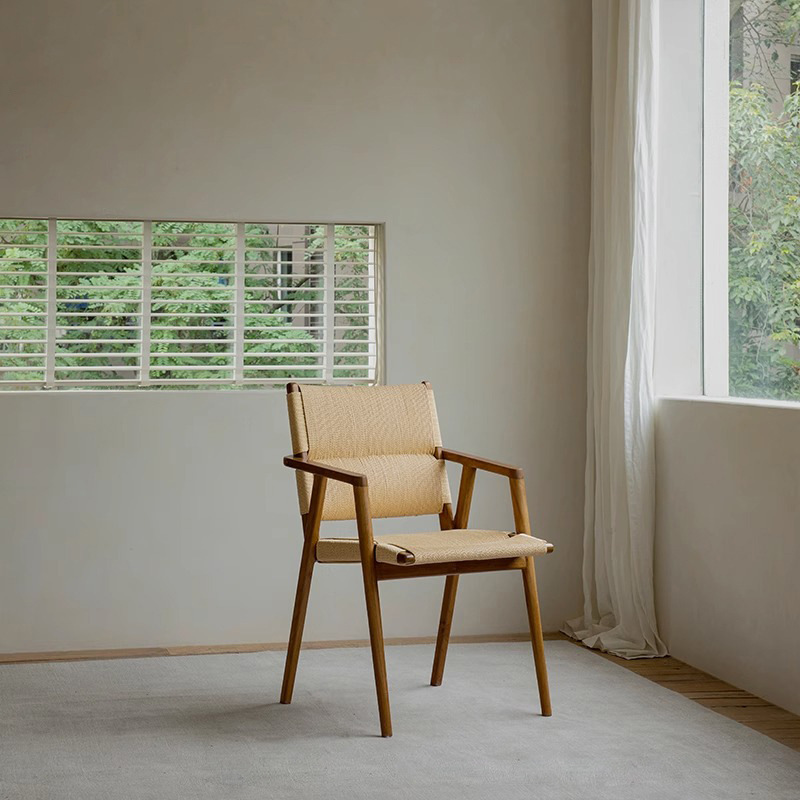 実木の食事椅子は座席板の背もたれのレジャー椅子を編んでいます。
