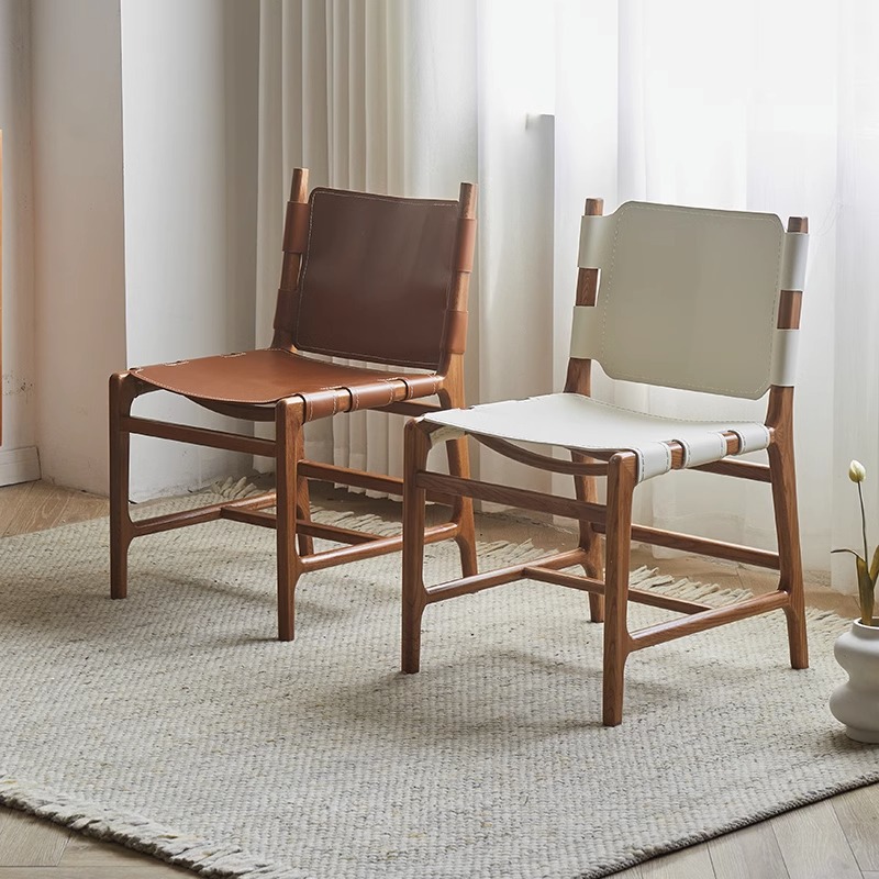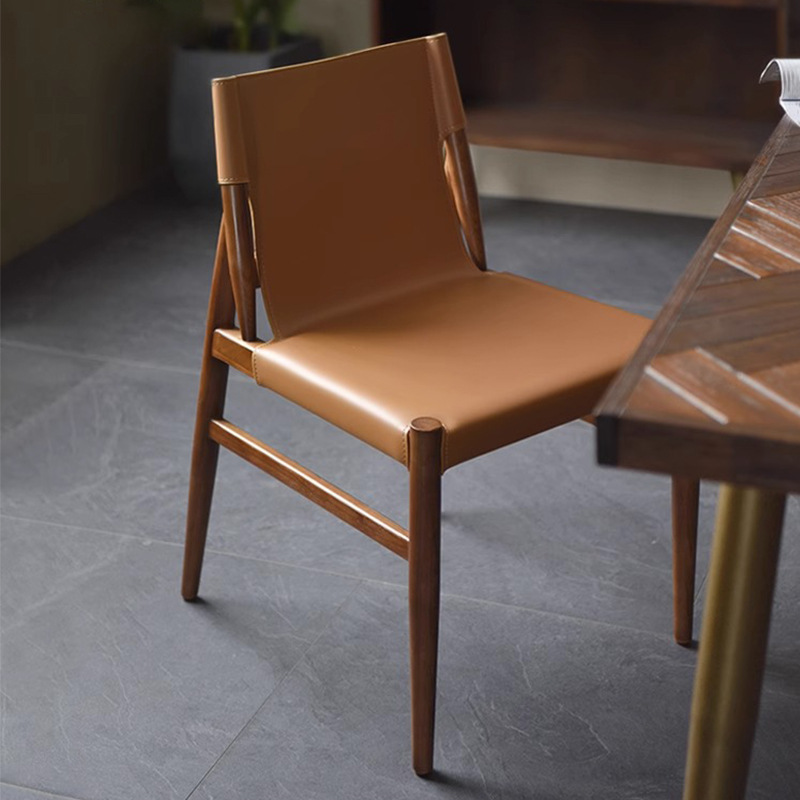 『ミュース』革椅子サドル革カジュアルダイニングチェア北欧家具全実木軽豪華家庭用現代背もたれ椅子