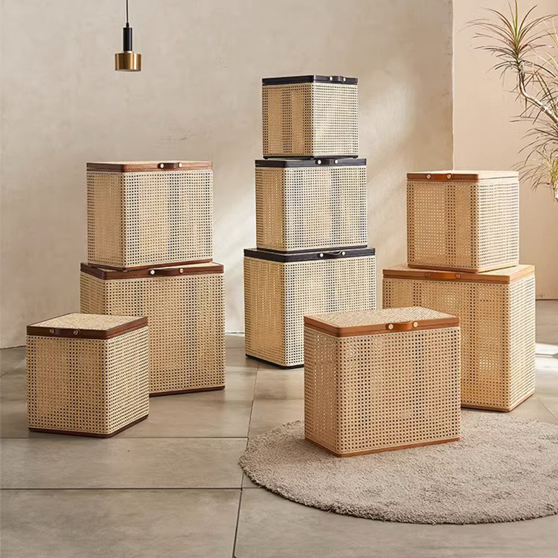 収納ボックス藤編み実木家庭用収納ボックス寂風家具竹編み収納ボックス日本式手作り