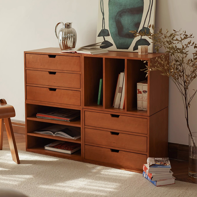 重ねて収納棚を収納します。レトロな木の引き出しテレビの棚を組み合わせます。