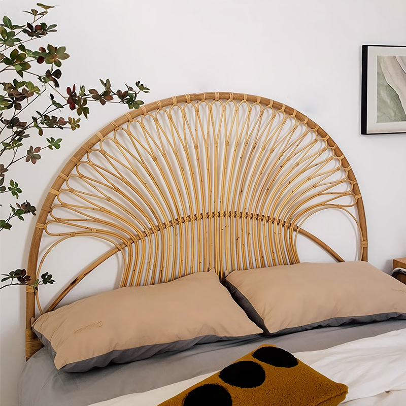 バミューダのベッドの頭板は簡単です。藤編みのベッドの頭板は丸い形の四角形の民宿のホテルのベッドの頭板を飾ります。