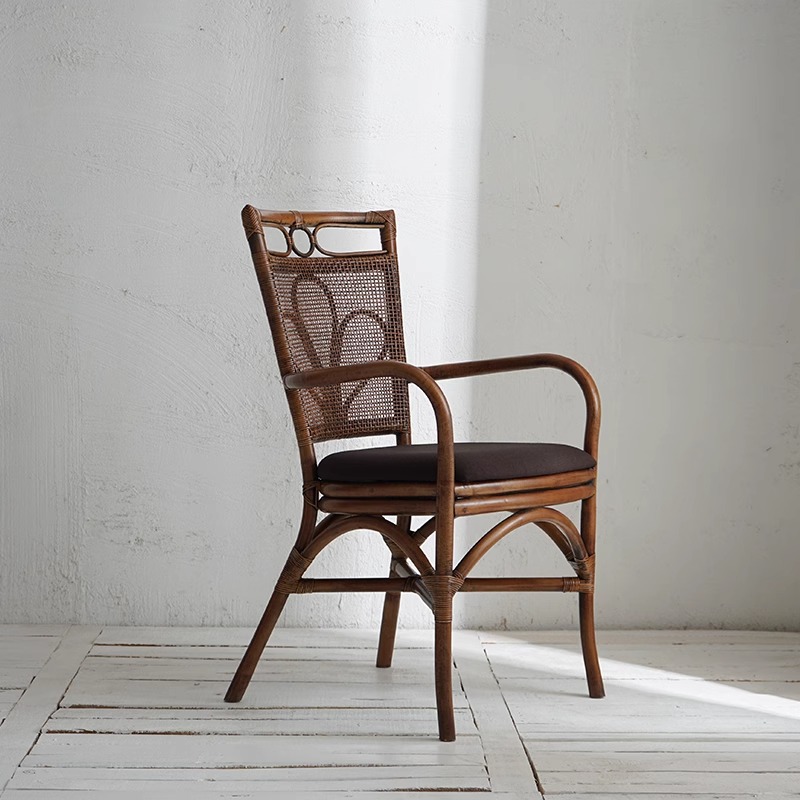 リナリア籐椅子ベランダ家庭用椅子カジュアルシンプルリビングダイニングチェアレトロダイニング籐編み手すり背もたれ