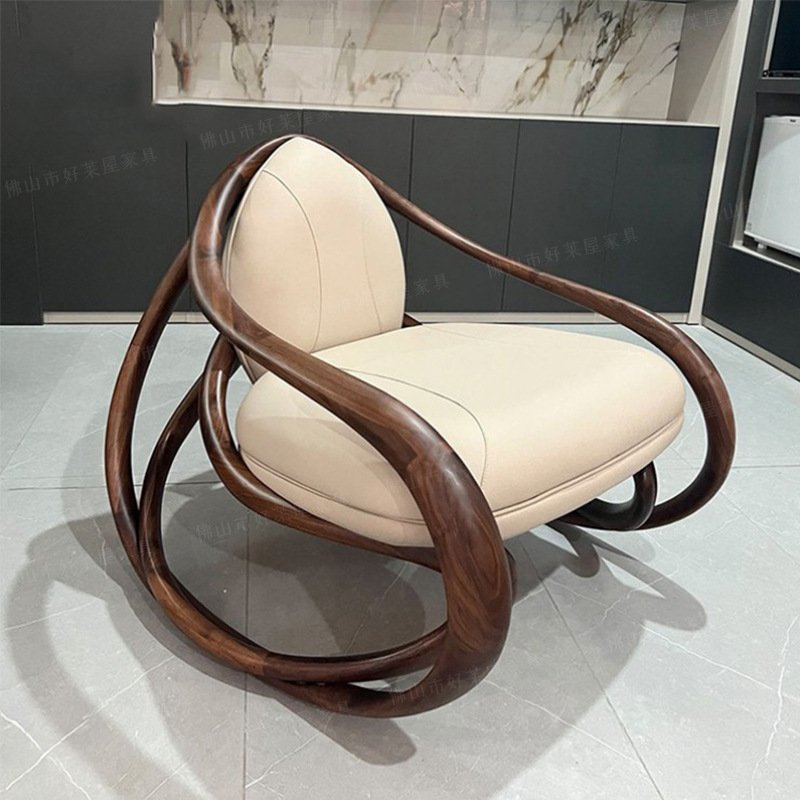 Giorgettiデザイナーmoveロッキングチェア実木ベランダ家庭用リビングカジュアルナパ本革ソファチェア