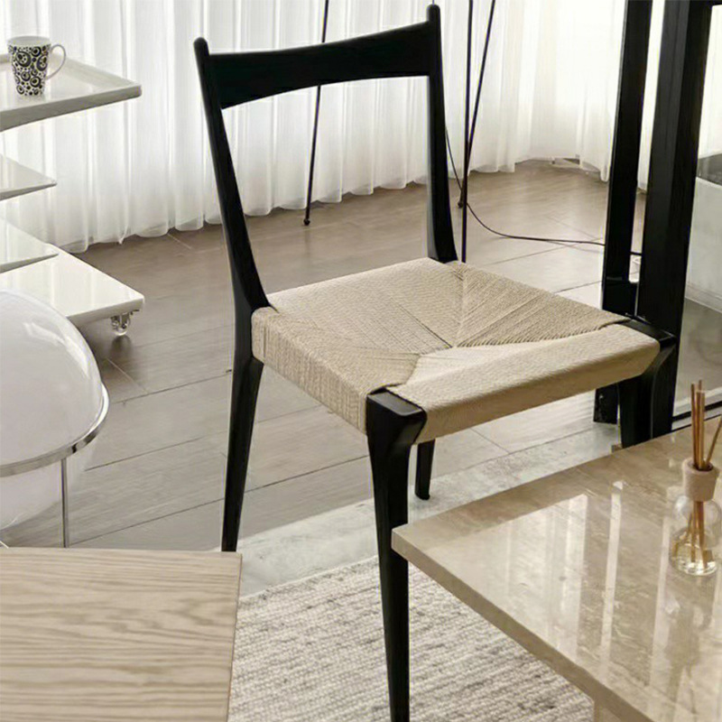 北欧実木編み椅子中古黒色食事椅子レトロ木製背もたれレストラン椅子化粧椅子