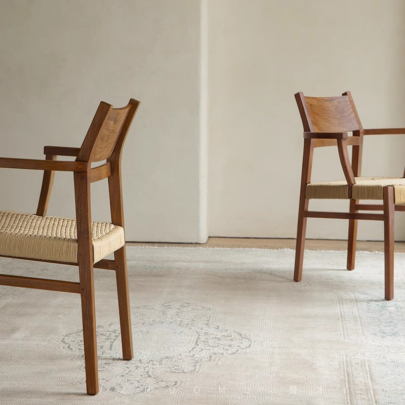 抱擁椅子 | 輸入白蝋木全実木背もたれ手すり椅子机復古縄編レジャー抱擁椅子