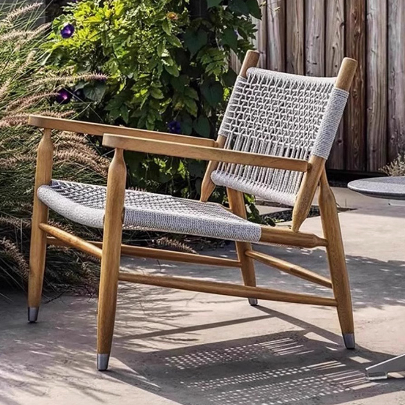 寂風シンプル原木牛革縄編みソファ椅子家庭用リビングルーム陽レジャーシングル椅子民宿藤編み椅子