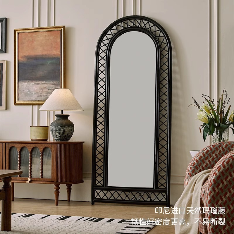 フランスのレトロな寝室の藤は全身の鏡を編んで、鏡を着ます。