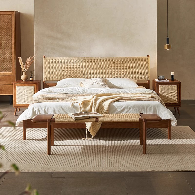 東南アジア風実木ベッド1.8メートル藤編ツインベッドホテル民宿藤芸家具デザイナータイプ藤ベッド