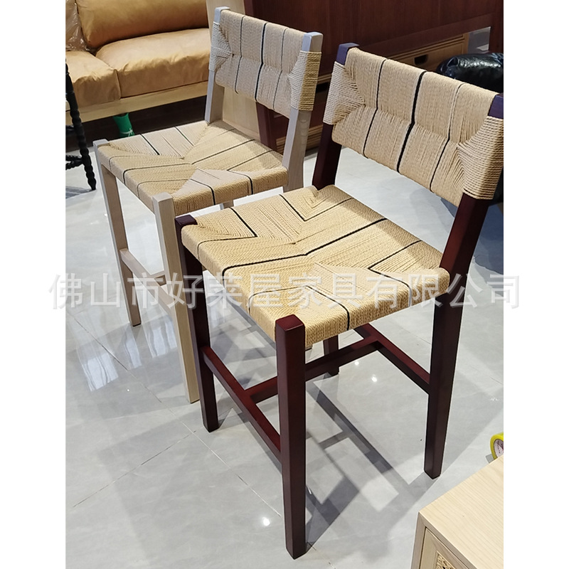 藤爾アメリカの実木白蝋木バー椅子のベッドの後ろの腰掛けの長い腰掛けのレジャーの椅子の天然の麻縄の芸術は腰掛けの島の台を編みます。