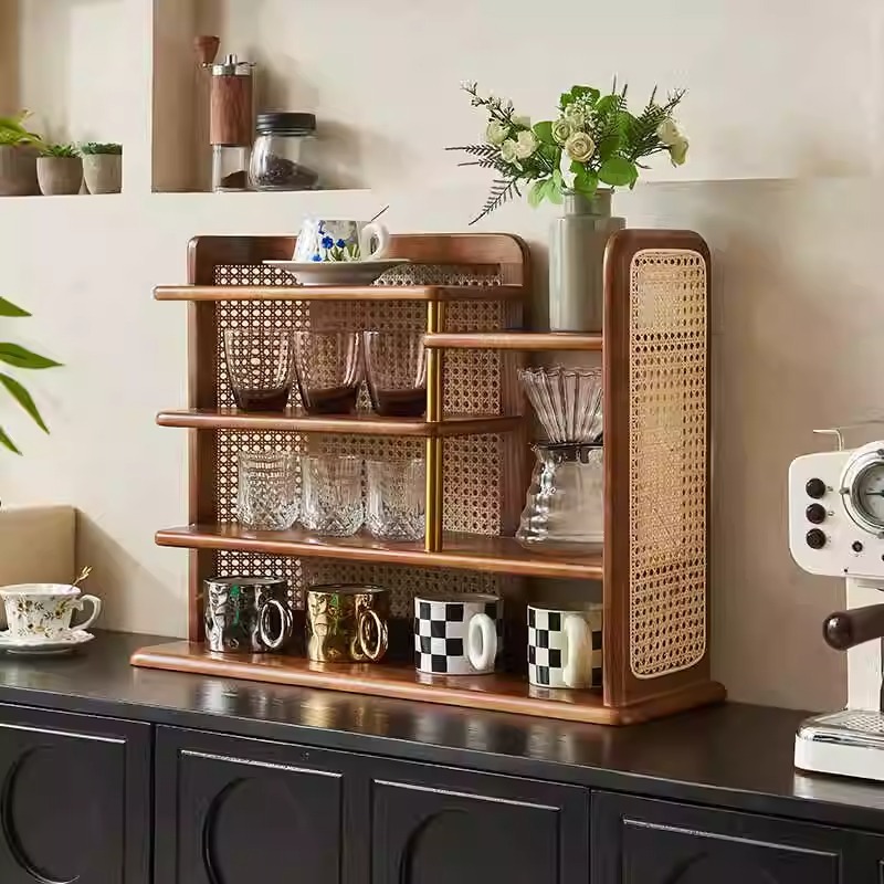レトロ籐編みカップホルダーティーテーブル棚テーブル天板高くなる棚カンフーカップコーヒーカップテーブル収納展示棚