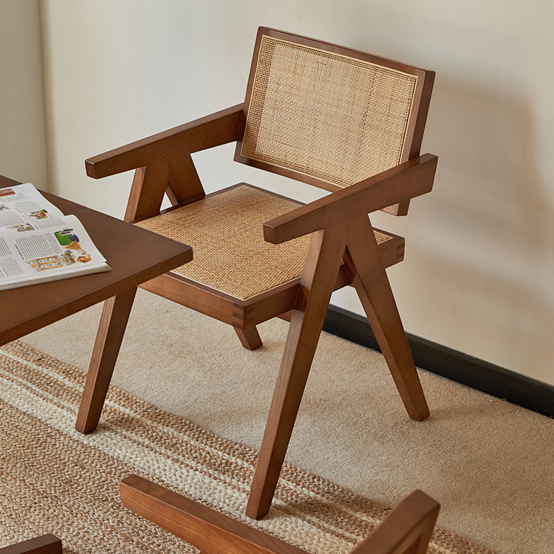 木製の食事椅子手すり付き椅子藤編み手作り客間茶椅子小戸型レジャー民宿シート
