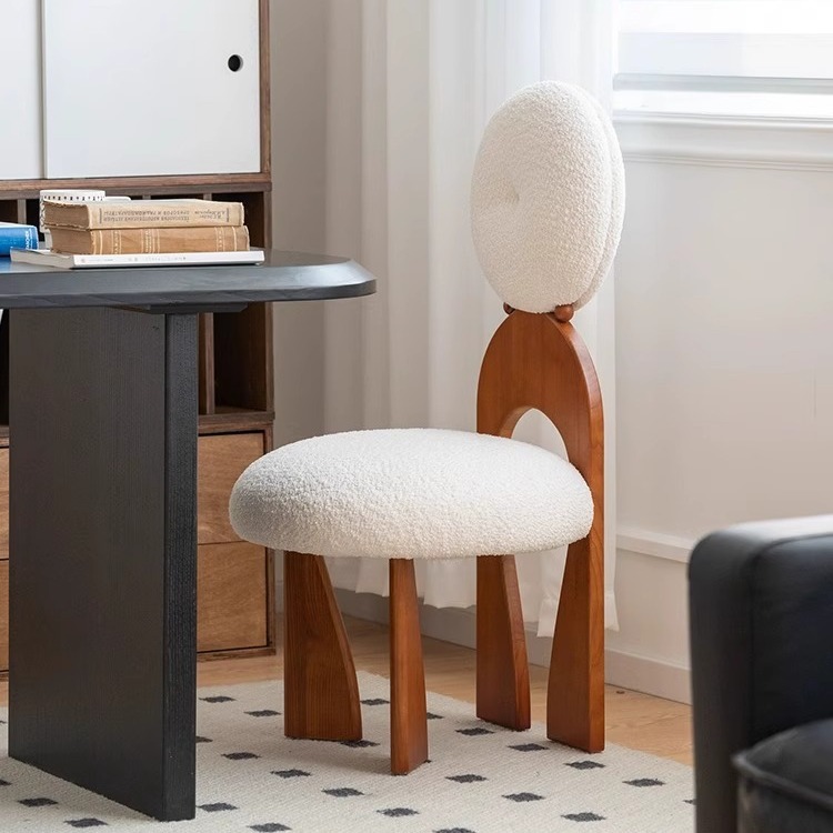 寂風実木布芸食事椅子カジュアルシンプル化粧台椅子軽豪華北欧現代中古化粧テーブル椅子