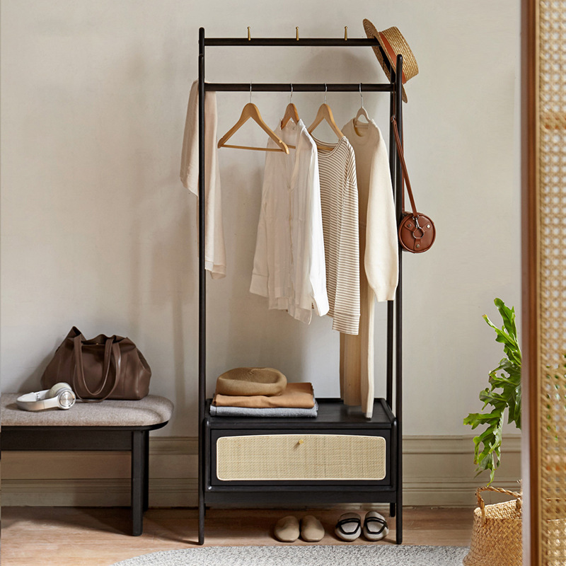コートラック寝室床置きハンガーシンプル黒原野コートラック籐編み物ラック北欧実木家具
