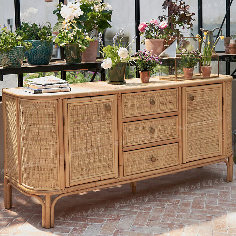 インドネシア藤編サイドキャビネットins民宿多機能ロッカー収納サイドキャビネット日本式家庭用