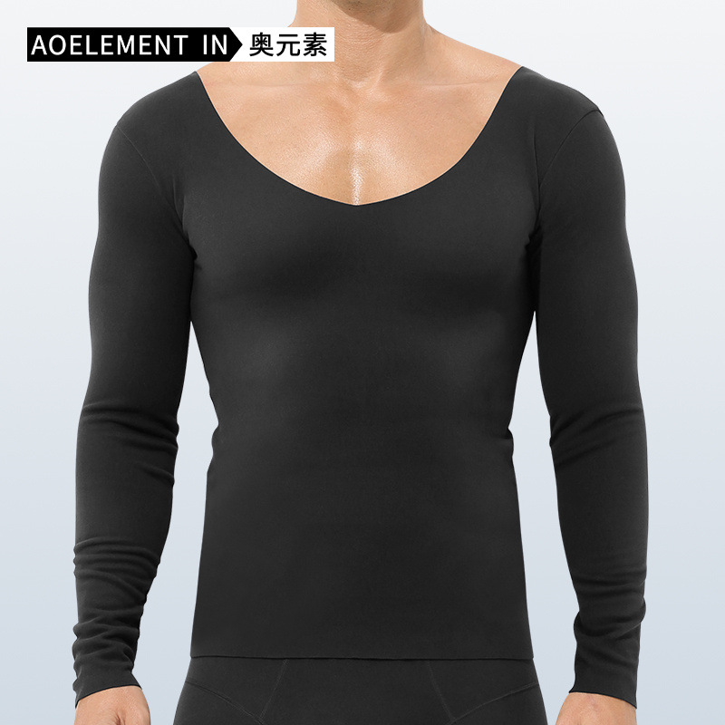 男性のベルベットは秋の服を厚くして、男性の秋冬の一枚の保温上着は長袖の底のシャツの丸首の基礎の下着を修理します。