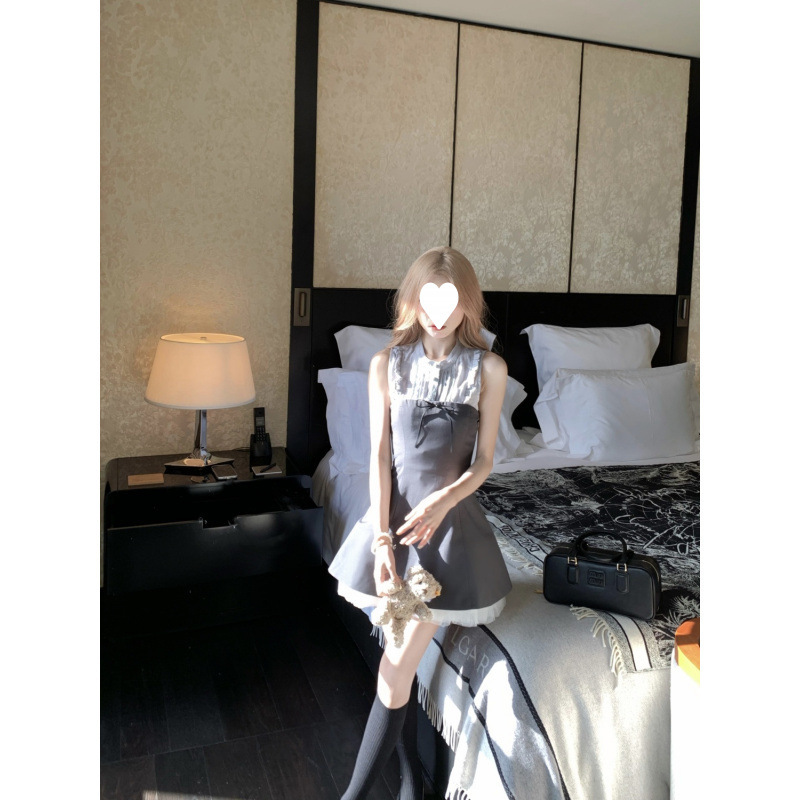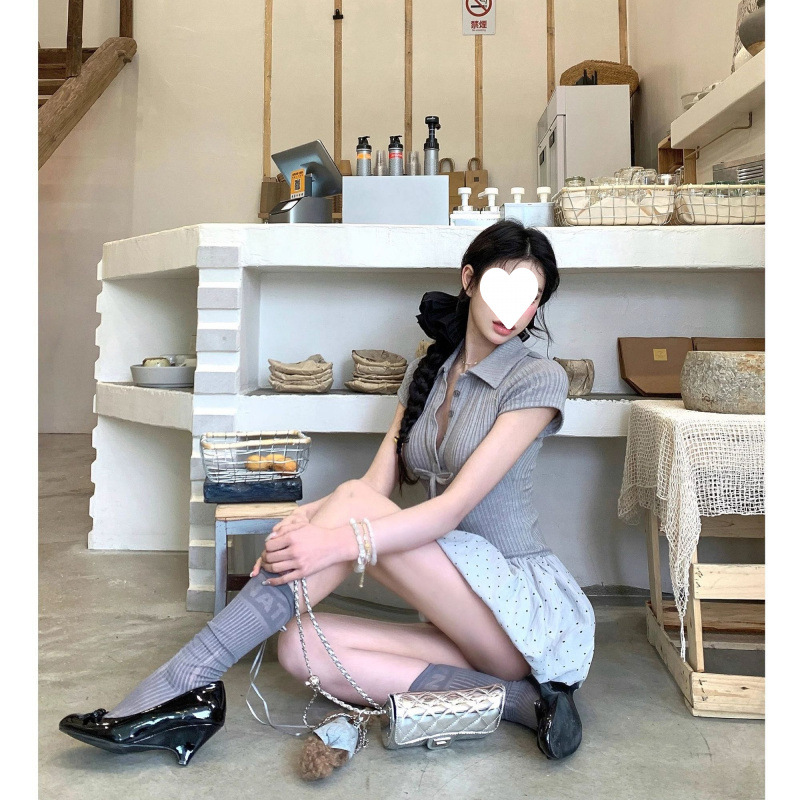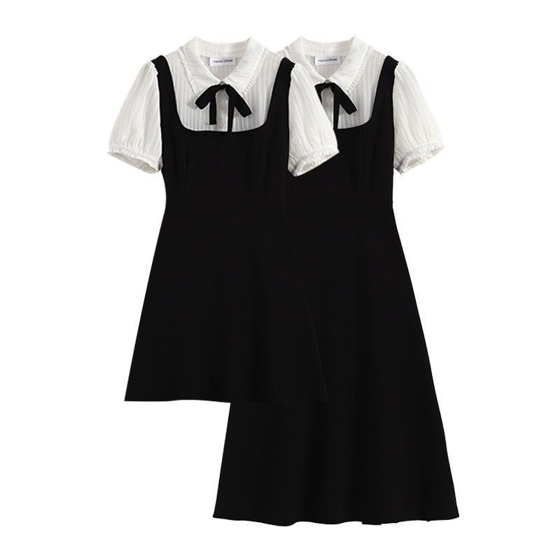 2025 新しいカレッジスプライシンググレースーツドレス夏のウエスト気質インターネット有名人のポロシャツ偽ツーピース