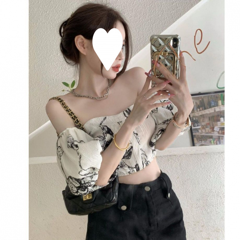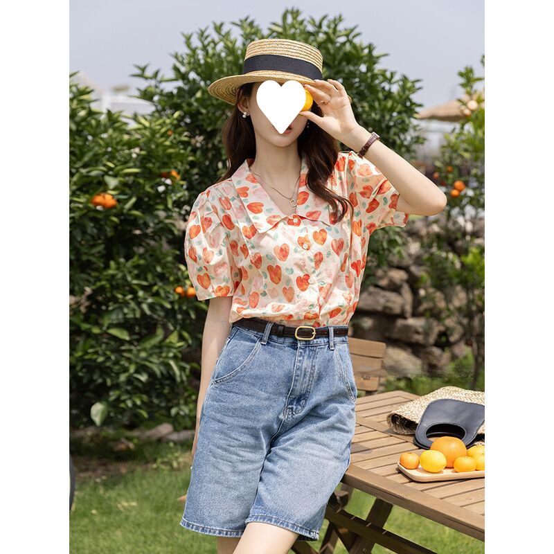 花柄シャツフレンチスイートシック2025年夏新作韓国風レトロパフスリーブ半袖トップフェミニン