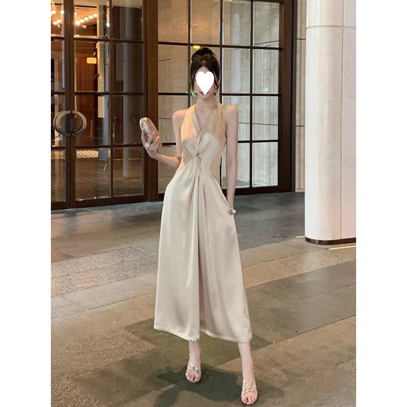 サテンドレスノースリーブフレンチタイセレブ新しい気質ロングスカート誕生日ハイエンドスカートドレスセクシーな女性