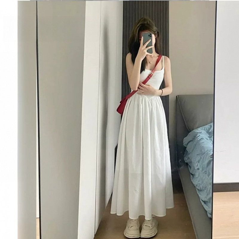 気質ウエスト痩身ロングスカートフレンチ初恋風白スカートサマーサスペンダードレス気質女神スカート