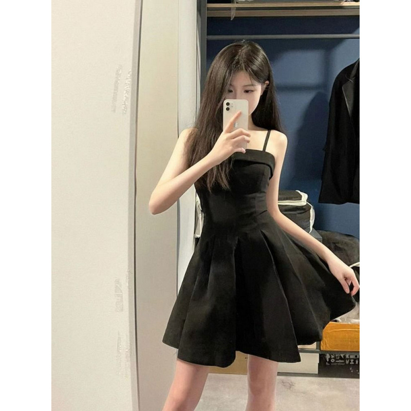 フレンチブラックサスペンダードレス女性のための 2025 夏の新スタイルスリムフィットプリーツショートスカート純粋な欲望ホットガールセクシー
