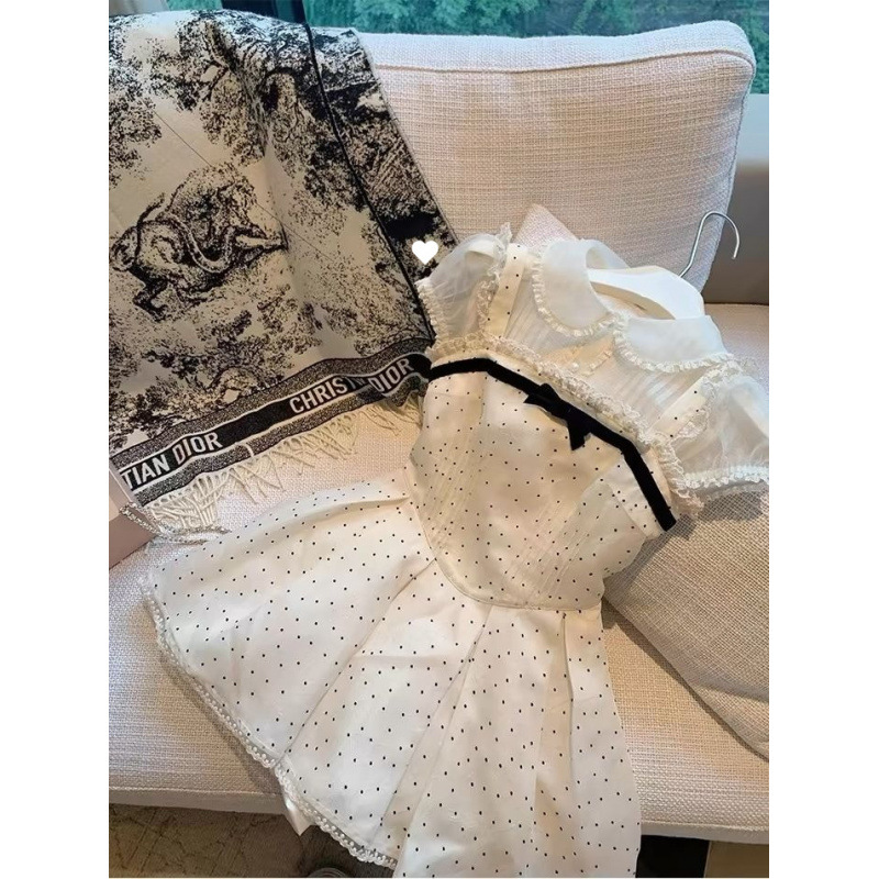 白い初恋フレンチサスペンダードレス夏の新しい妖精小柄な痩身優しい気質ウエストスカート