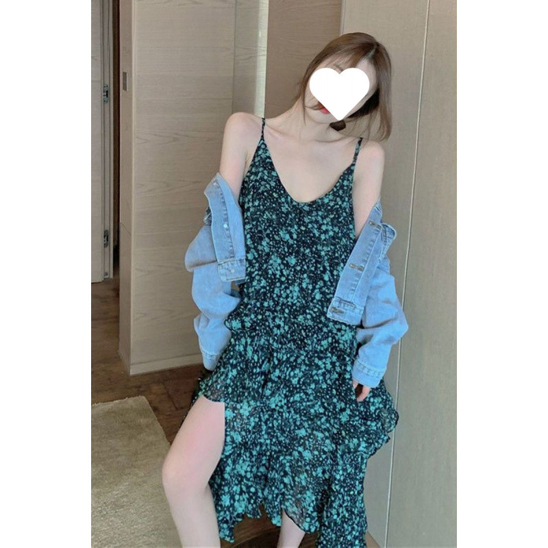 シフォンドレスレディース夏プラスサイズファットmmフレンチフローラルスカートデザインニッチ不規則サスペンダーロングスカート