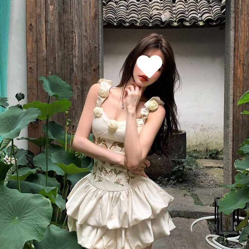 フランス紙の花の刺繍サスペンダースカート 2025 新しい女性の夏のハイエンドの絶妙で超見栄えの良いドレス
