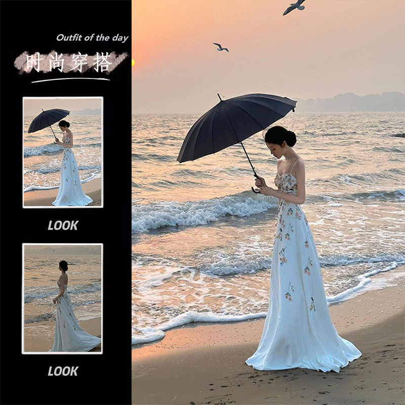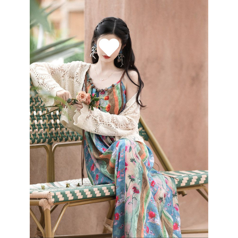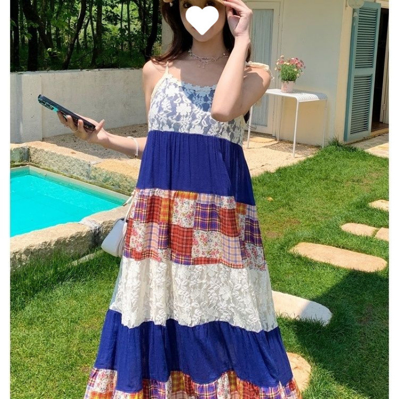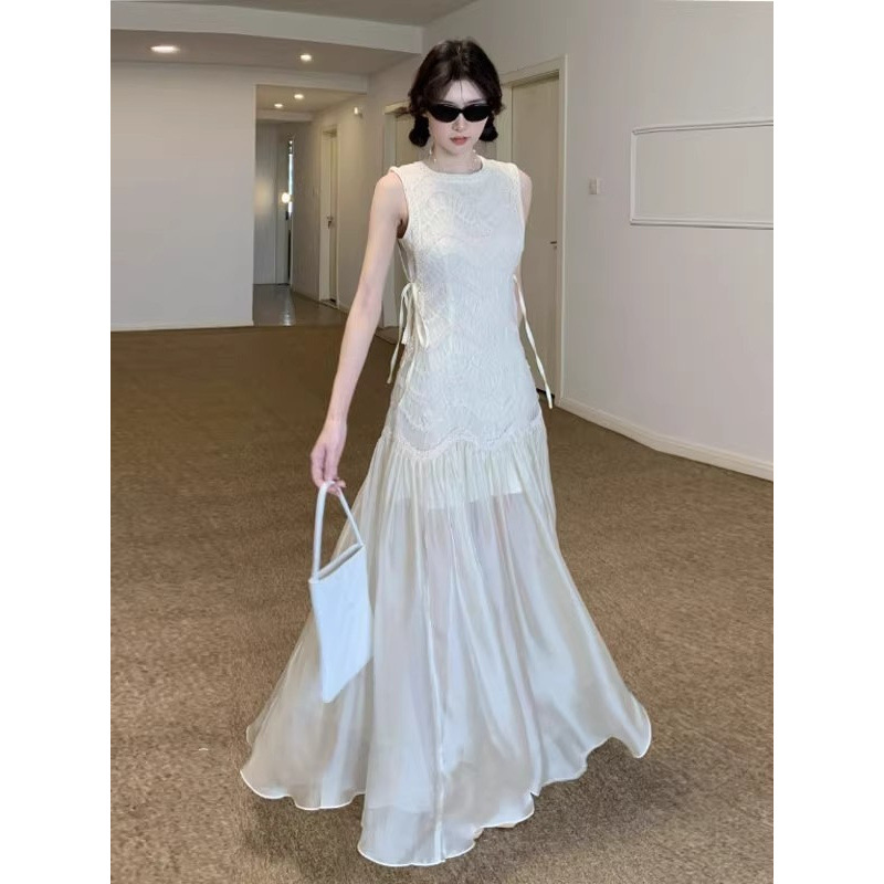 海辺のリゾートスタイルノースリーブベストスリムフィットドレスニッチノンコリジョンロングスカート2025夏の新スタイル