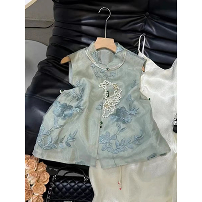 2025年夏の新しい中国風の婦人服、今年人気の美しいサスペンダードレス、ベストスーツ