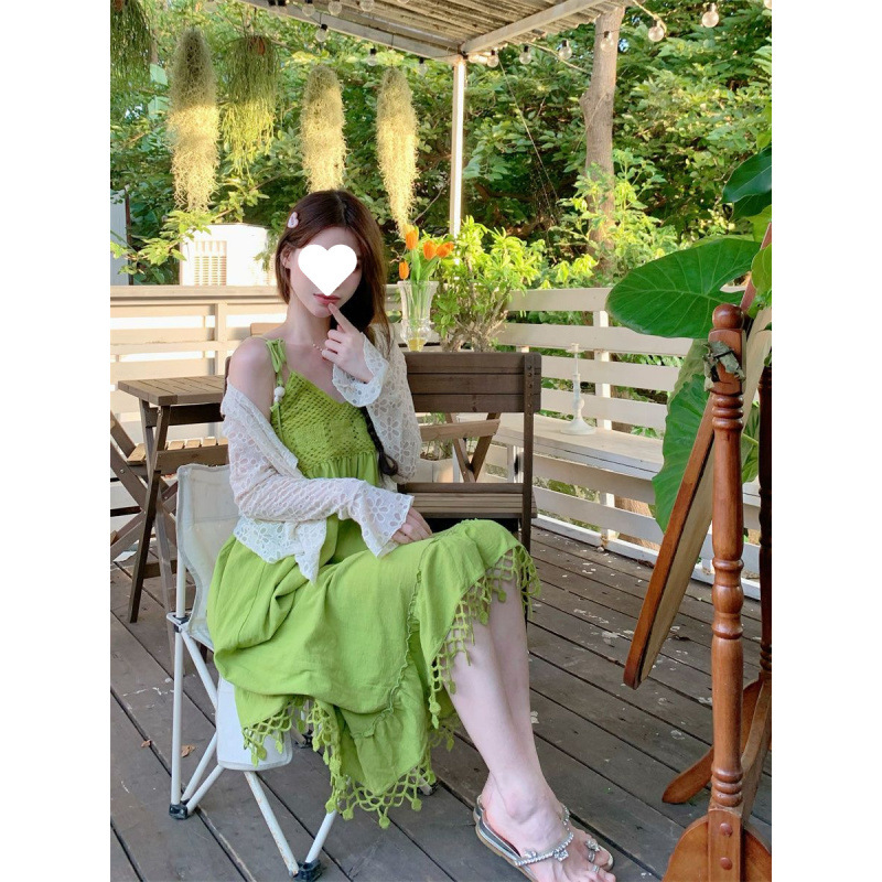 超仙のデザイン感のあるフリンジの花の背もたれのワンピースの女性の夏の甘くて優しい風のゆったりとした隠れた肉の中の長いスカート