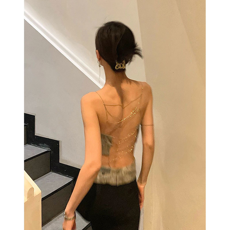デザインニッチバックレスチェーンセクシーな純粋な欲望スタイルのベスト夏のアウターウェアクールな新しいレトロシックなサスペンダー女性用