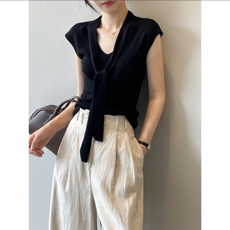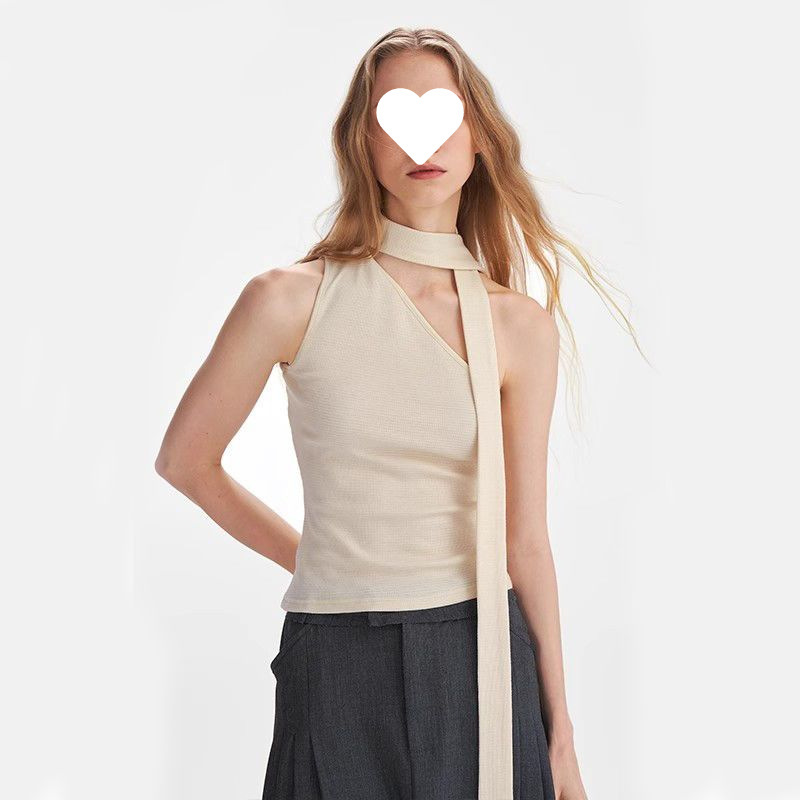 デザインストラップ付きノースリーブニットTシャツ女性用2025夏新作韓国風スリムフィット西洋スタイルホルターネックトップ