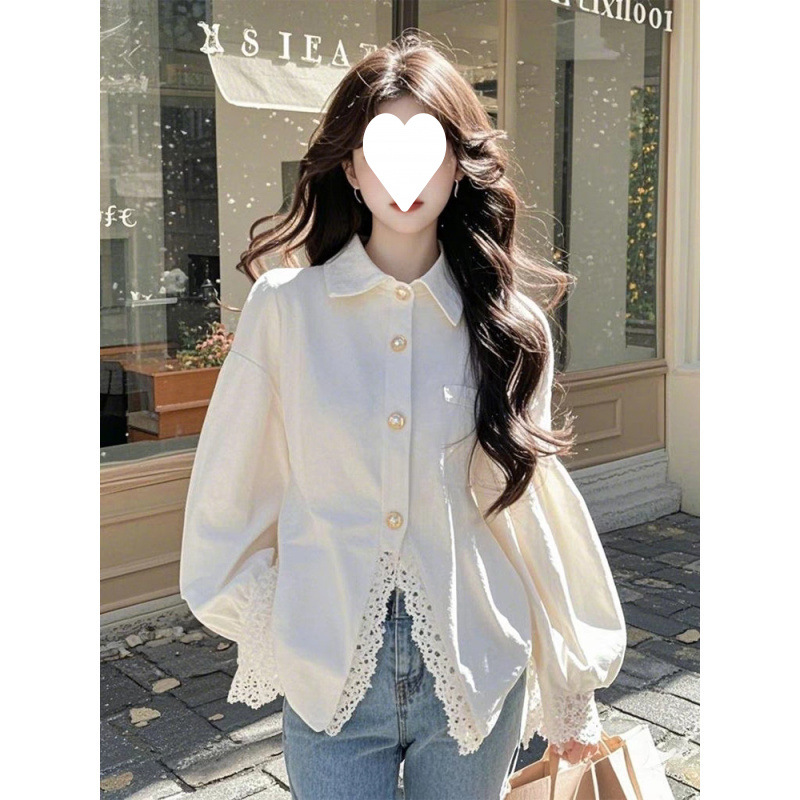 今年人気の美しいシャツ、ユニークで超美しいデザイン、年齢を軽減する西洋スタイルの白いレースのスプライシングシャツ