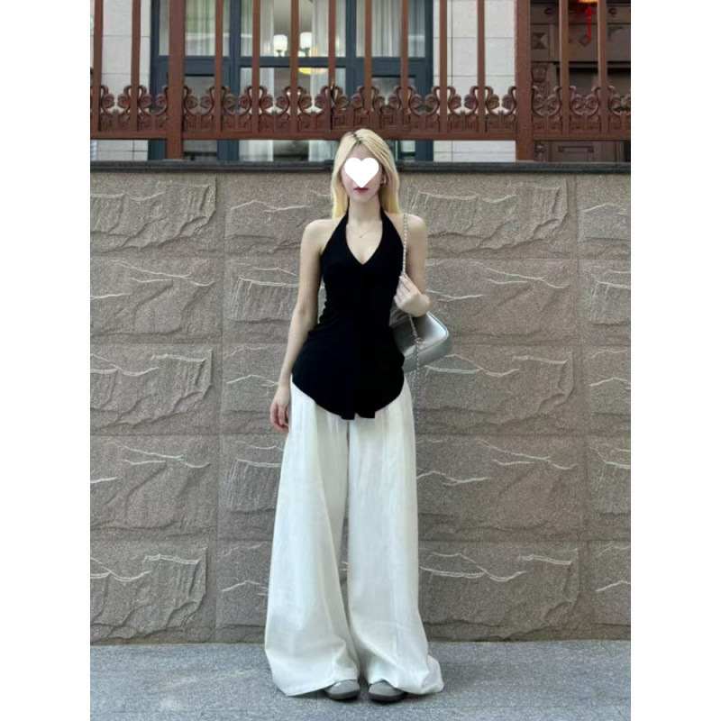 Pure Desire ブラック ホルターネック バックレス V ネック ベスト レディース 夏 ハイエンド 気質 スリム ホットガール ノースリーブ トップ
