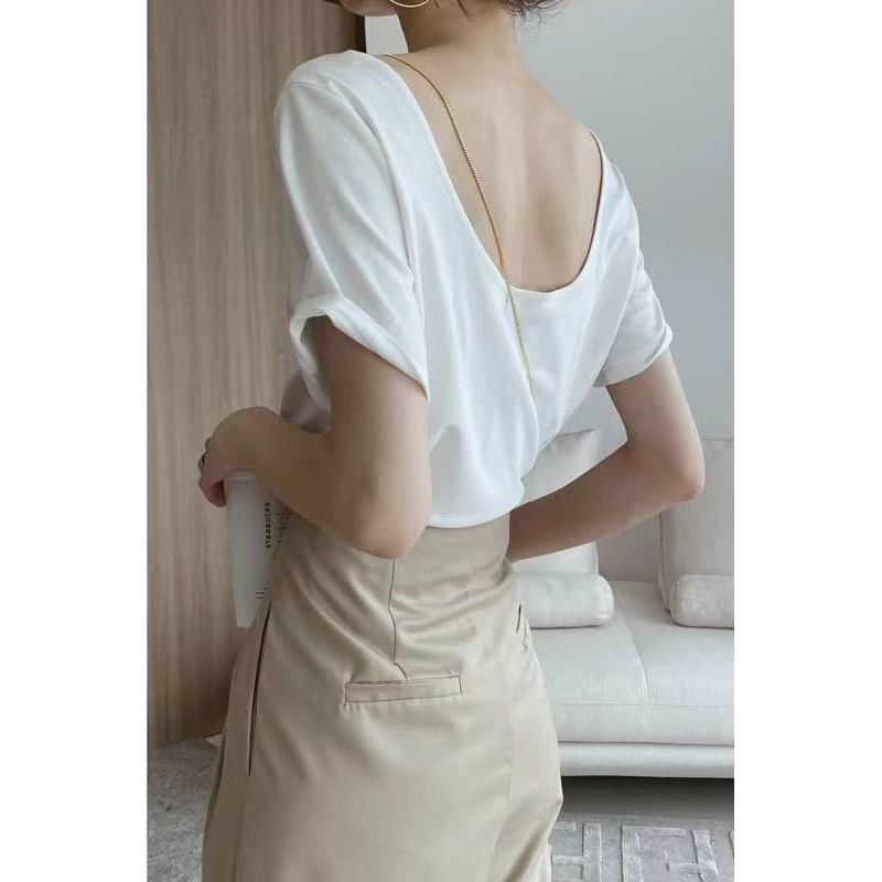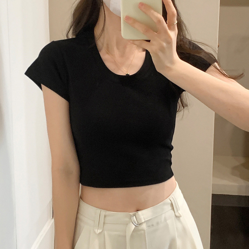 夏2025新型正肩半袖ファッションカジュアル内にギャル臍高腰tシャツinsトレンド純色
