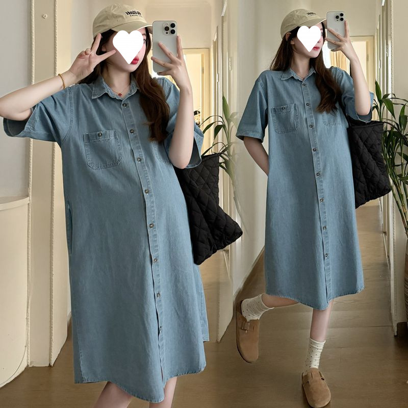 マタニティデニムスカート夏 2025 カジュアルマタニティドレスデザインファッションマタニティシャツスカートハイエンドスカート
