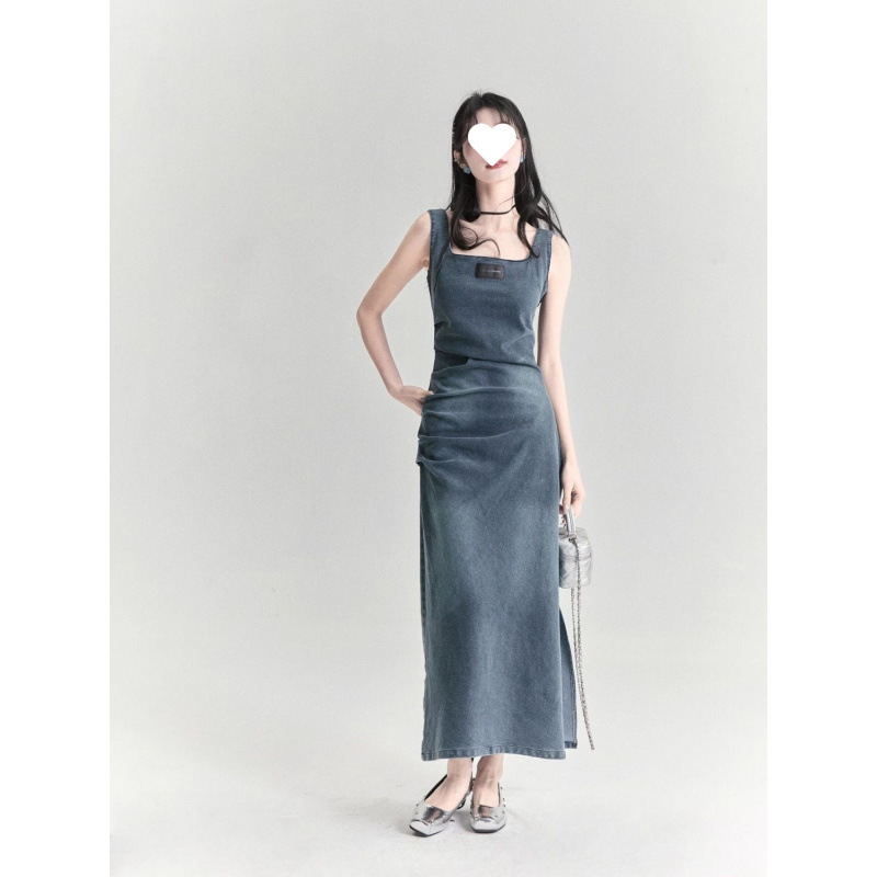 アメリカのレトロなノースリーブデニムワンピース女性の夏2025新作デザイン感があります。